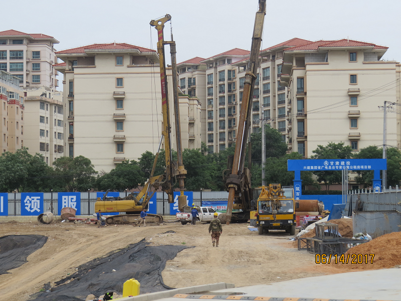 工程總工期913天,預(yù)計(jì)2019年9月30日竣工。目前工程已完成全部支護(hù)樁、冠梁、降水井施工,基坑開挖至項(xiàng)目標(biāo)高-9m處,預(yù)計(jì)本月底完成整個(gè)基坑開挖與支護(hù)工作。